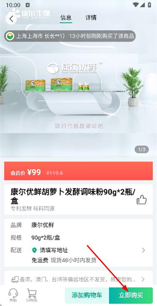 3、在商品详情页面点击立即购买按钮,完成该商品的购买流程。
