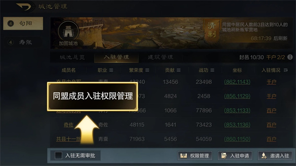 3、同盟成员可以管理居民入住,并且拥有撤销城池封邑的管理权限;