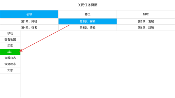 3、切换到第2章探索标签,选择战斗任务,了解战斗相关的引导内容,准备进行战斗。