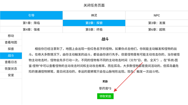 4、在战斗任务界面点击领取奖励,获取完成任务的道具,继续推进后续的任务流程。