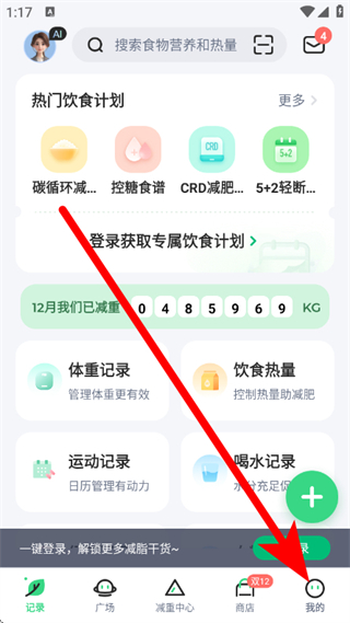 1、打开薄荷健康,点击底部我的,进入个人页面。