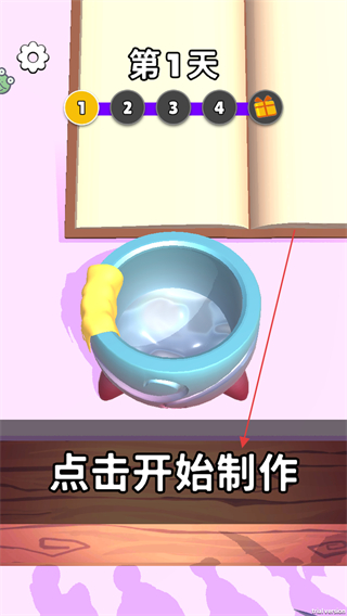 1、在第1天界面点击点击开始制作,进入魔法锅制作流程,准备按步骤制作物品。