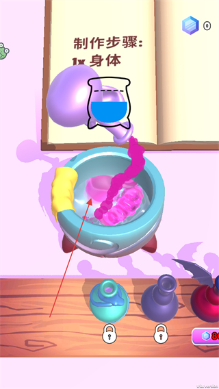 3、搅拌魔法锅内的材料,等待进度条加载完成,推进身体部分的制作进程。