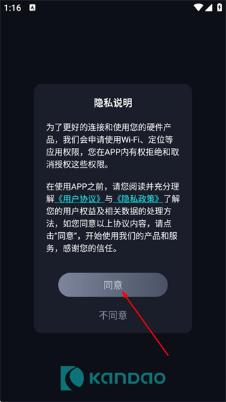 1、在应用的隐私说明弹窗中,点击同意,进入我的记录仪页面。