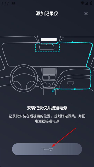 3、在添加记录仪的引导页面,查看提示后,点击下一步,完成记录仪的添加流程。