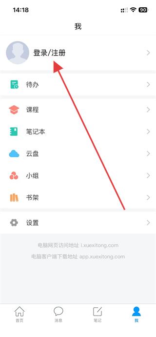 2、在个人中心页面点击登录/注册选项,进入登录界面。