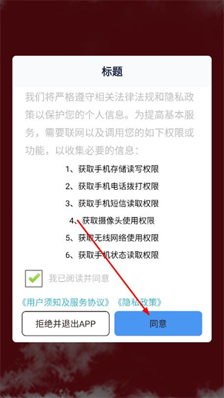 1、打开626课堂APP,在弹窗中选择并点击同意按钮。