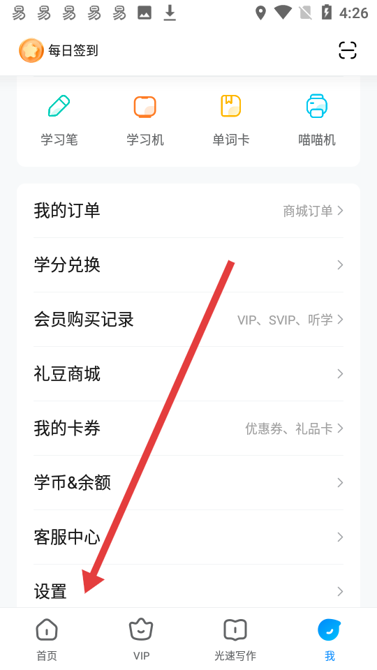 1、在作业帮APP,进入我的页面,点击屏幕下方的设置进入。
