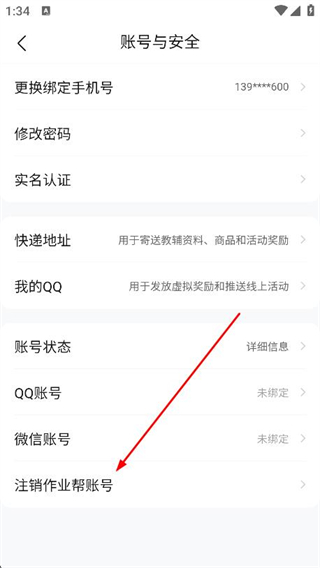 4、点击注销作业帮账号选项,按照页面提示完成账号注销操作。