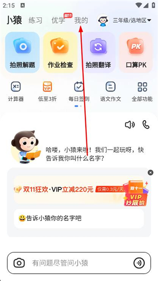 1、打开小猿搜题,点击顶部导航栏我的选项。