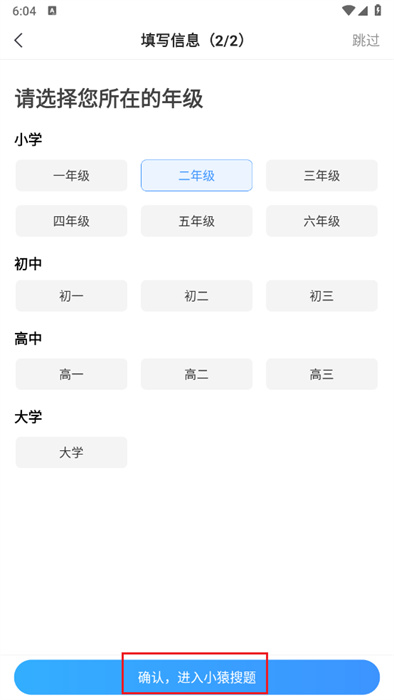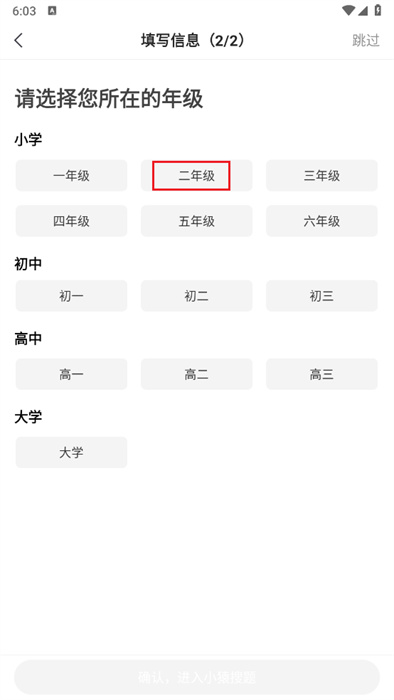 2、此时将需要进行年级的选择,可以按照个人的年级来进行选择。如【二年级】;