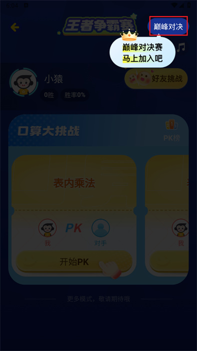 4、此时点击【立即挑战】按钮,以进行比赛的参与;