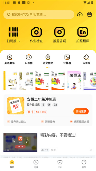 快对作业书库覆盖率高达95%,新学期来临,快对作业新增各类学习资料、解析等12万余本,各类资料一应俱全!包括教辅解析、作文、各类试卷、优质笔记、手抄报、读后感、课件等。扫码搜书,秒出整本教辅解析,支持扫书码搜、按书名搜、拍封面搜、按学科搜、按年级搜等方式迅速定位学生所需学习资料,同时提供配套解析,其中包含视频讲解及文本解析,学生可以通过观看习题难点详解和专业的视频讲解,快速攻克难点及易错点,提升学习效率。