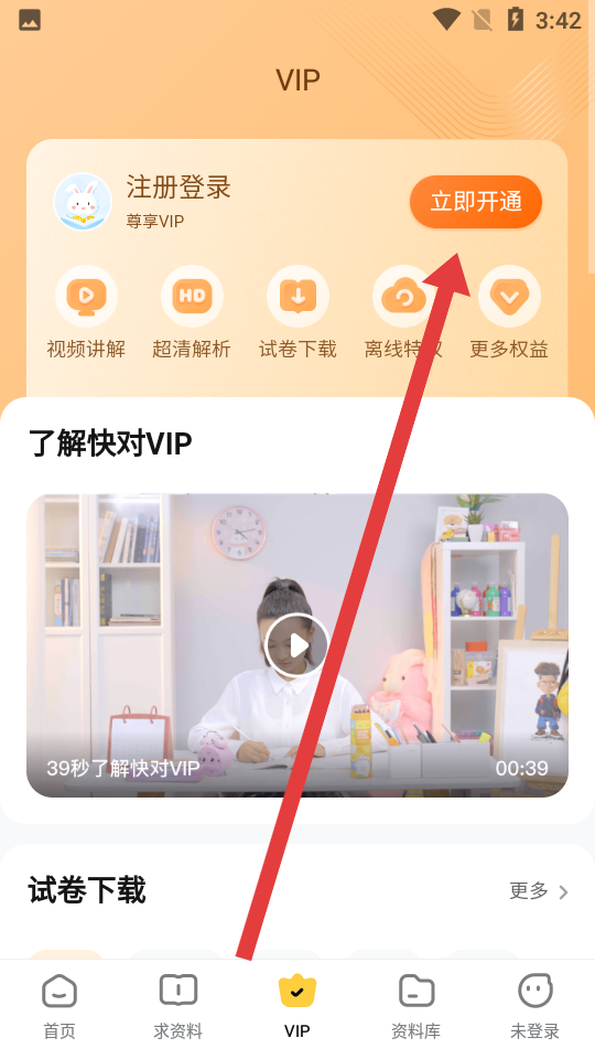 1、打开应用后找到VIP专属页面,在页面显著位置点击立即开通按钮,即可开通尊享VIP服务。