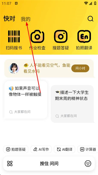 1、打开快对作业APP,找到并点击页面顶部的我的选项。