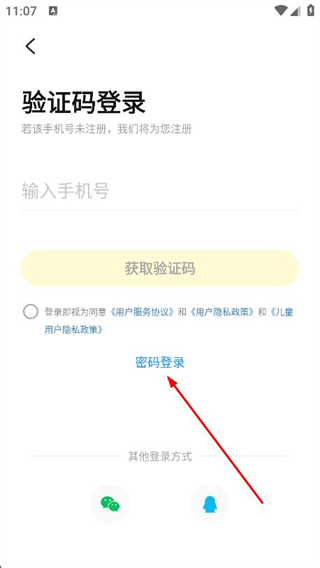 3、在登录界面点击密码登录选项,切换到密码登录页面。