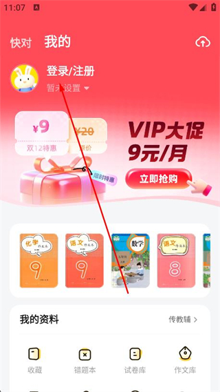 1、进入应用后,如图所示,在上方的搜索框中输入想要搜的试卷、作文、单词或者教辅材料