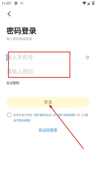 4、填写手机号和密码,点击登录按钮,即可完成账号登录。
