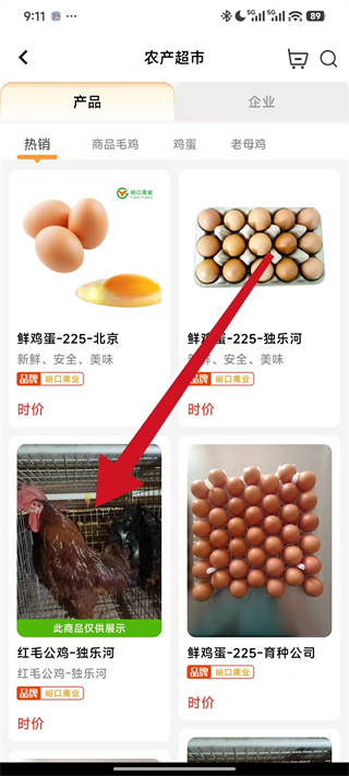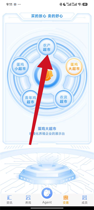 3、在交易页面中选择农产超市,进入农产超市的产品展示页面。