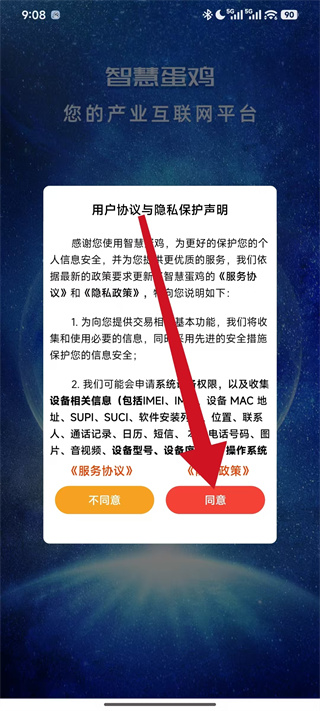 1、打开智慧蛋鸡,在弹窗中点击同意,进入应用主界面。