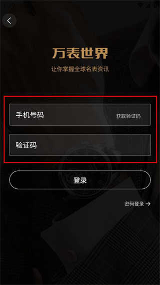 3、在登录界面的对应输入框中,填写手机号码,再点击获取验证码并填写对应内容。
