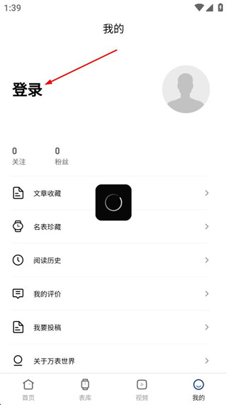 2、在个人中心页面找到“登录”区域,点击该区域进入万表世界的登录界面。