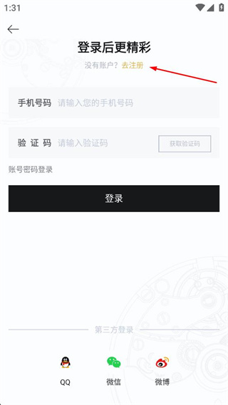 2、进入登录界面后,点击“去注册”选项,切换到注册爱名表会员的页面。