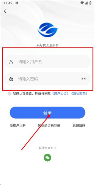 3、在登录页面填写用户名和密码,勾选协议后,点击登录完成账号登录操作。