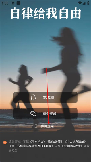 1、打开每日计步app的登录页面,选择手机登录选项,进入手机号输入界面。