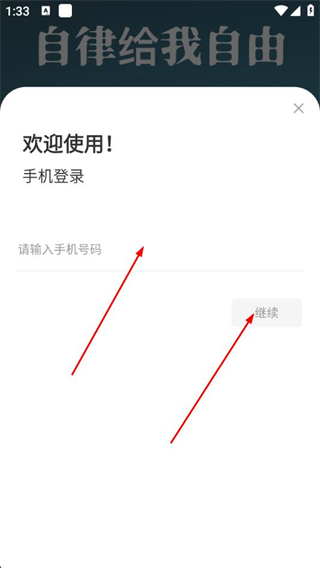 2、在手机登录界面填写手机号,点击继续,触发短信验证码的发送。