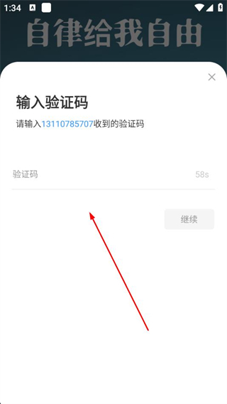 3、在验证码输入界面填入收到的短信验证码,点击继续即可完成新账号的注册与登录。