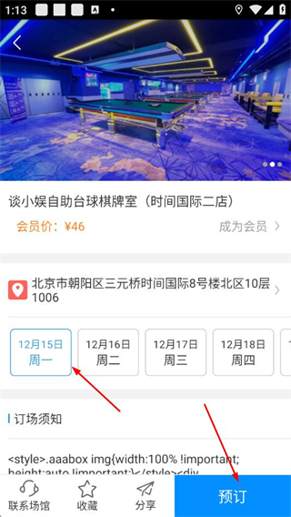 4、在场地详情页选择预约日期,点击预订完成场地预约。