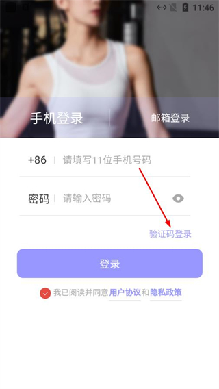 2、在验证码登录界面填写手机号,勾选协议后点击获取验证码,等待接收短信验证码。