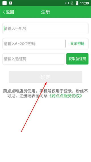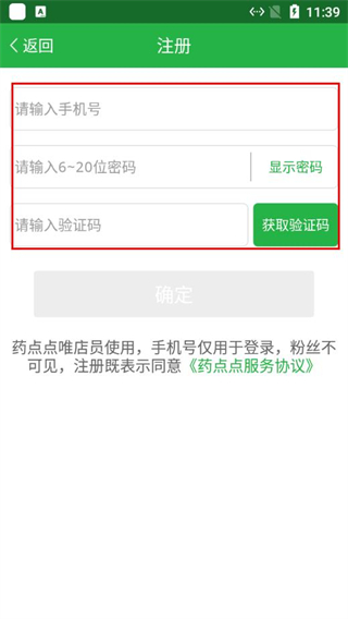 2、在注册页面依次填写手机号、设置密码,填入短信验证码。
