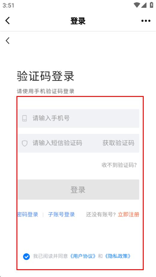 3、在登录页面,填写信息后点击登录,完成账号登录操作。