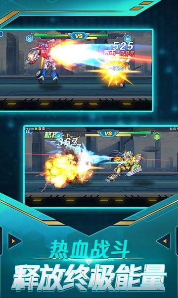 非常热血的机甲对战游戏,在这里你可以控制各类不同的机甲英雄,不断战斗,同时提升他们的战斗实力,还能自由变形,转换不同的造型,体验激爽的战斗!