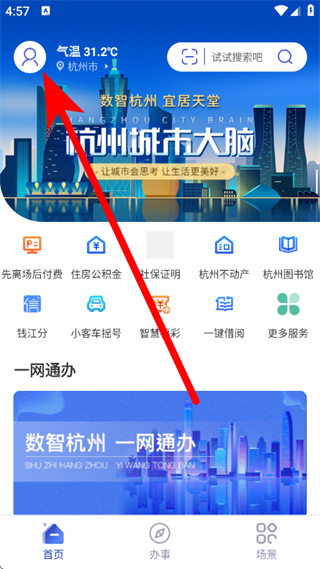 1、打开杭州城市大脑,点击左上角的头像图标。