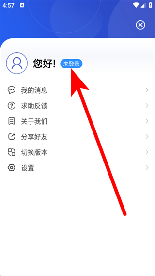 2、在弹出的菜单,点击未登录,进入登录流程。