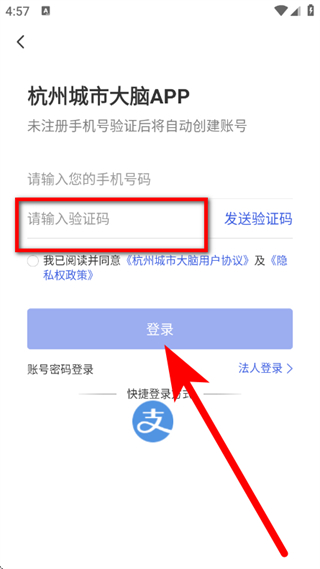 4、在输入框输入验证码,勾选协议后,点击登录,完成登录。