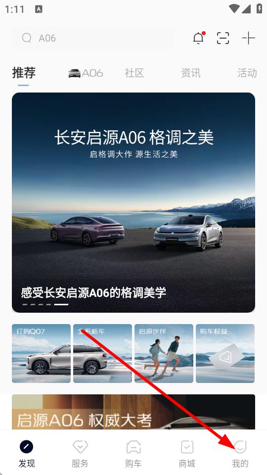 1、打开欧尚汽车APP,点击底部导航栏中的我的进入个人中心页面。