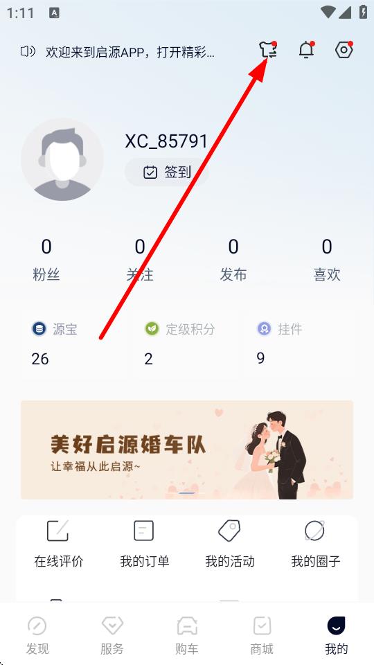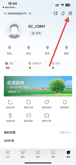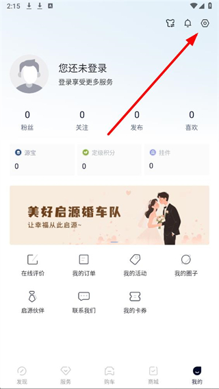1、在长安启源APP我的页面,点击右上角的设置按钮,跳转至设置页面。