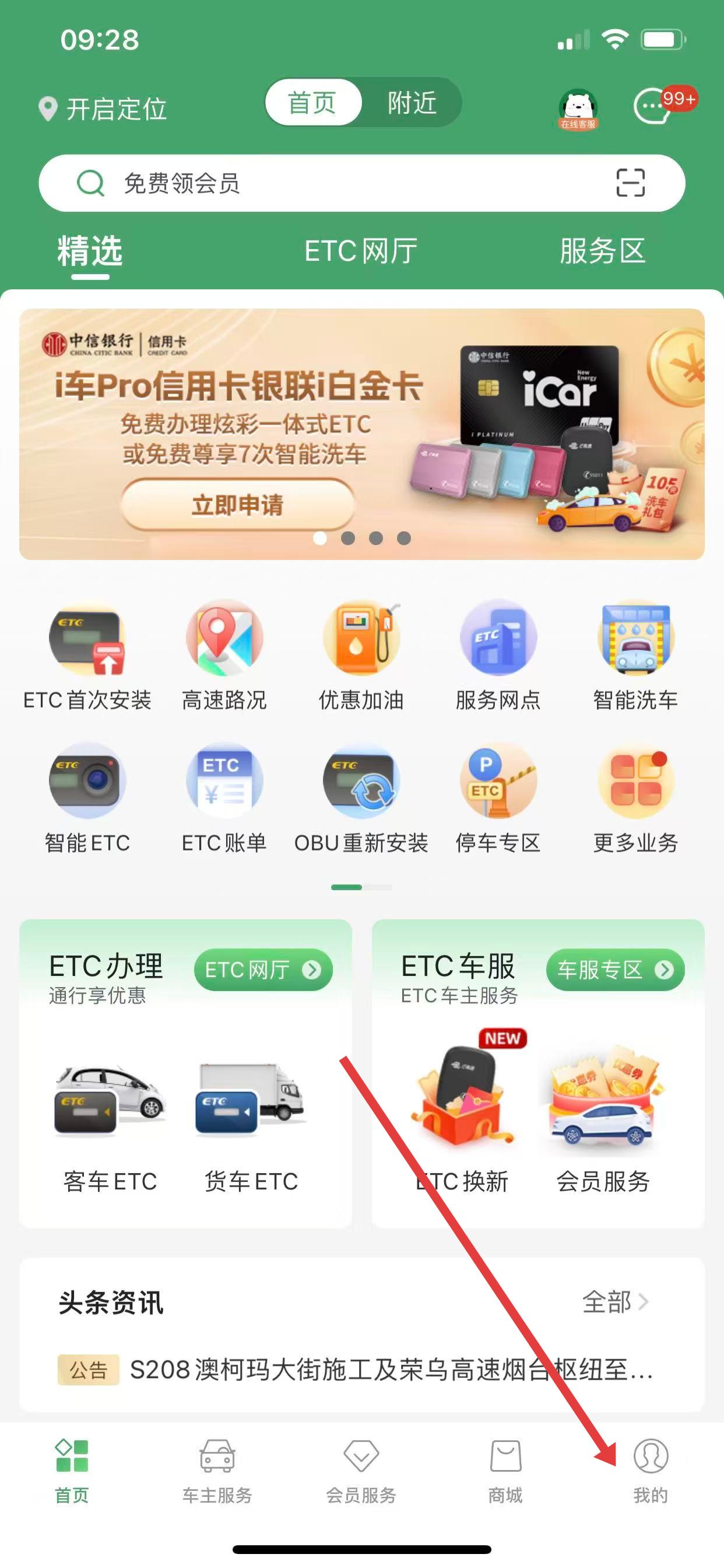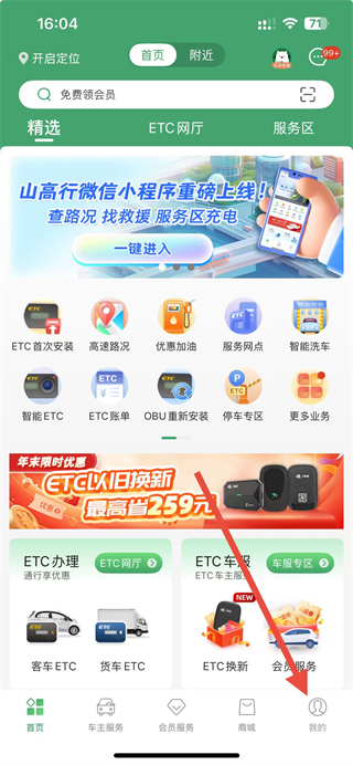 1、打开e高速App,点击底部导航栏中的我的选项。