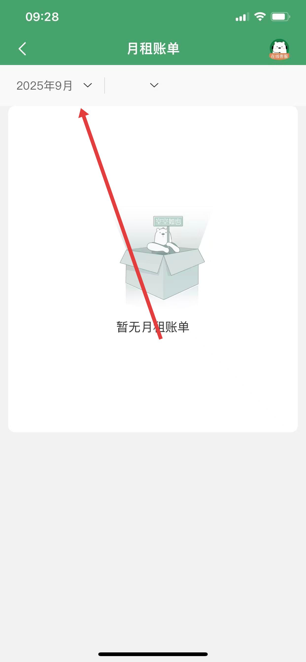 4、以月租账单为例,可通过选择年份和月份,查询不同时间段的账单信息。