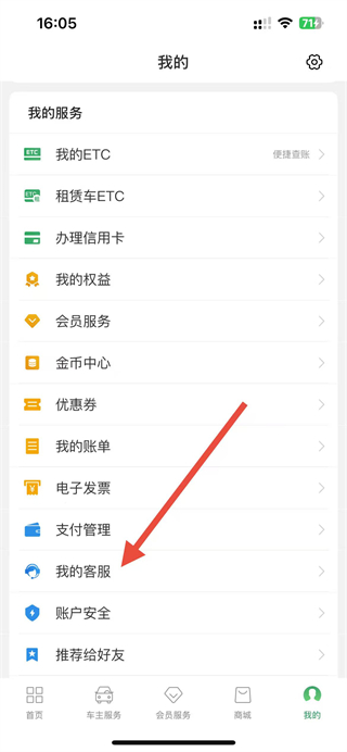 2、在我的界面中,找到我的客服选项并点击,跳转至客服相关页面。