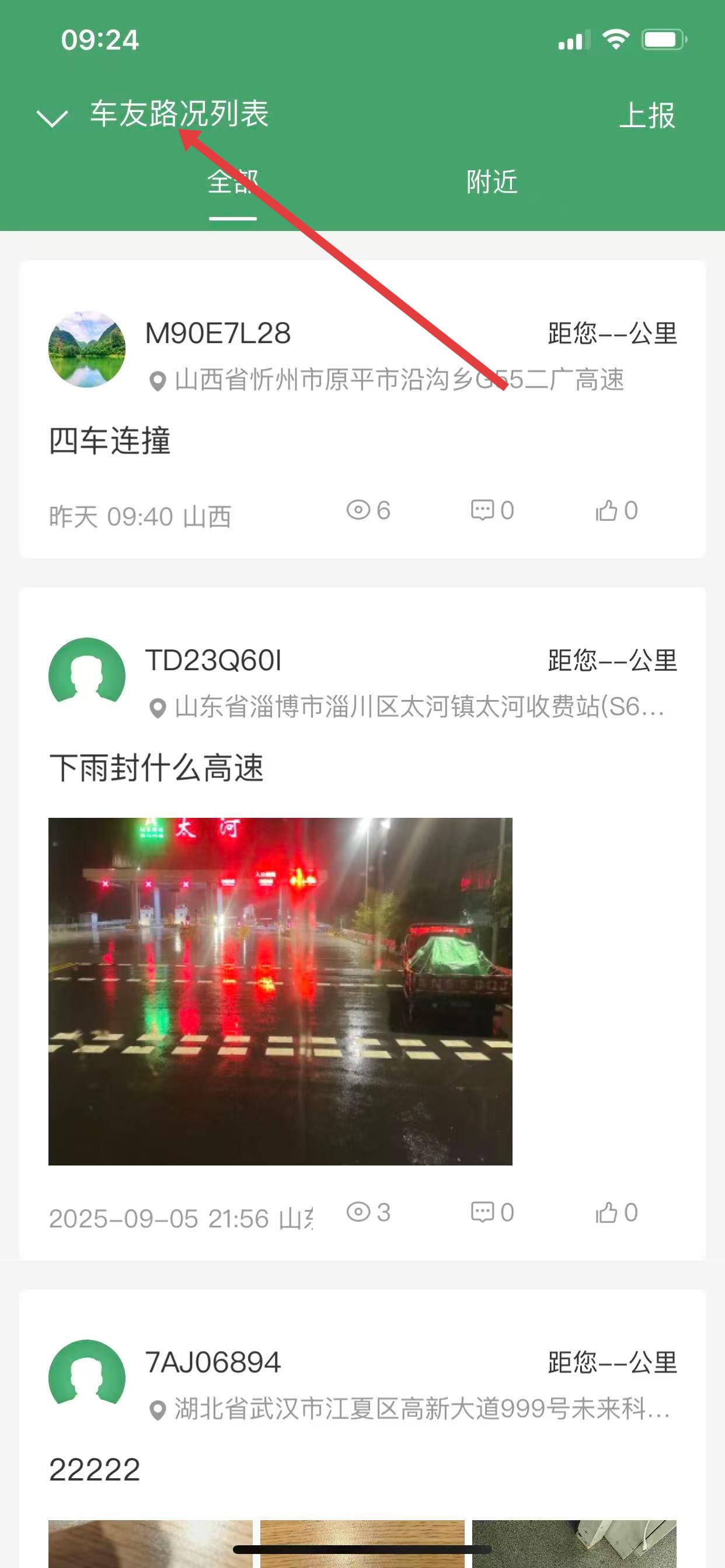 4、在路况界面,点击车友路况列表,还能查看其他车友上报的路况信息,了解更多实时情况。
