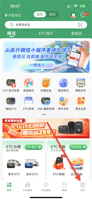 1、打开e高速APP后,点击页面底部我的选项,进入我的界面。