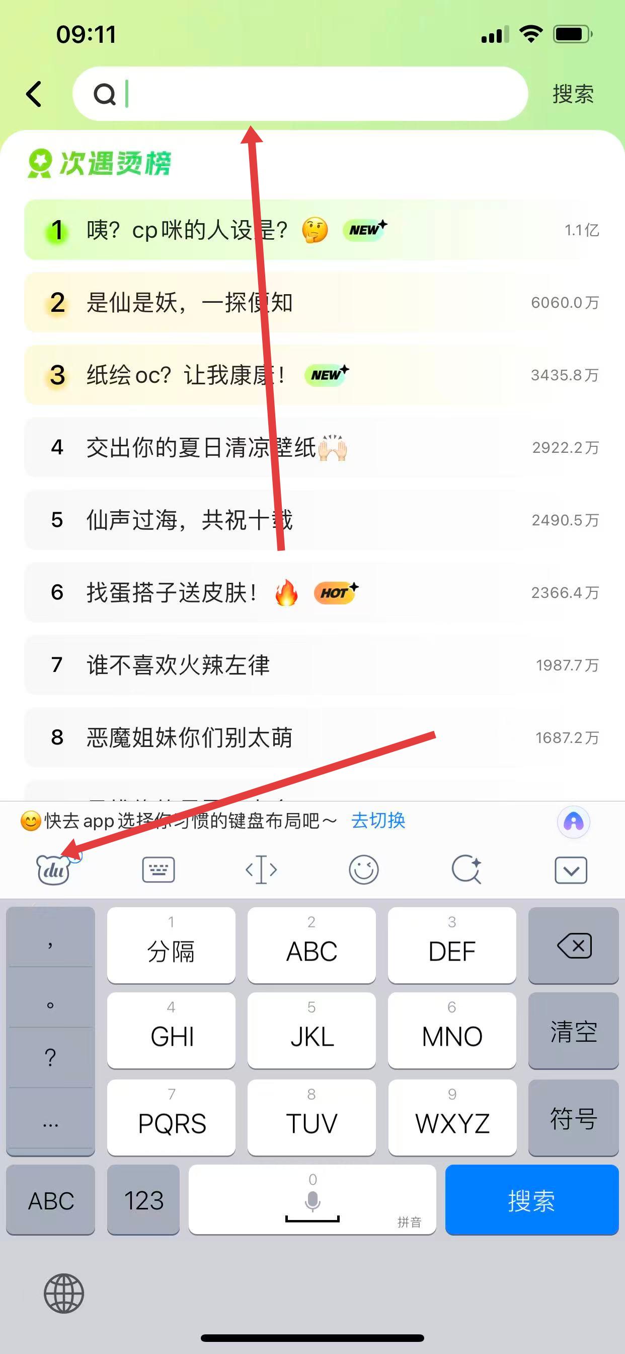 超大系统词库:重构内核架构,50万系统词库,输入流畅,选词准确。
