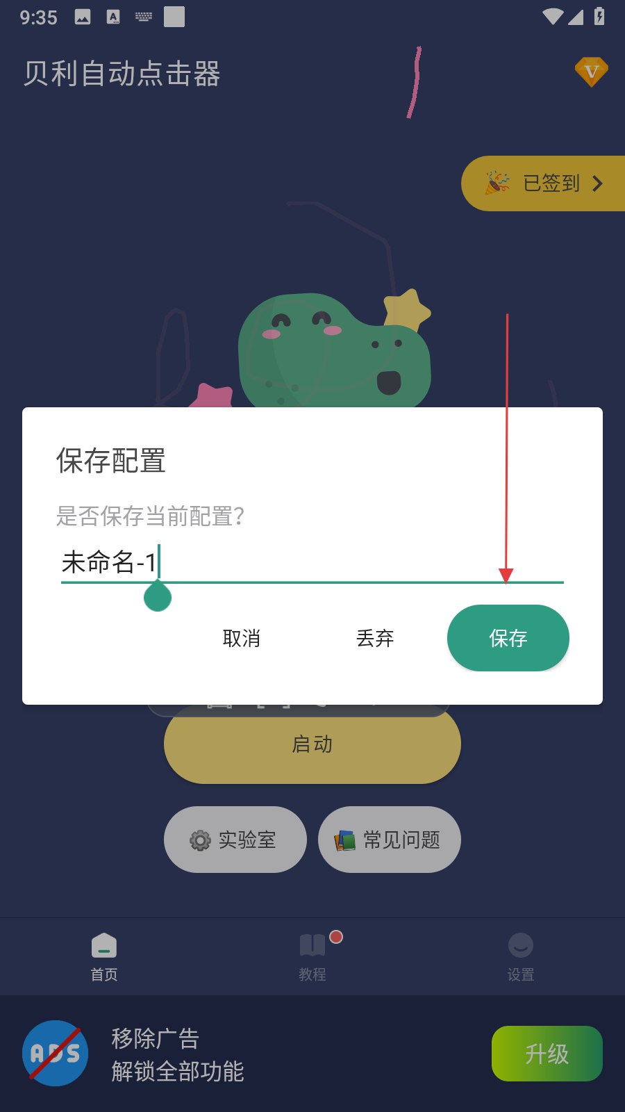 3、录制结束后,在弹出的保存配置窗口中,输入配置名称或保持默认,点击保存按钮,完成自动点击配置的创建与保存。