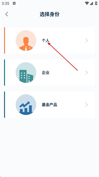 3、在选择身份页面,点击个人选项,进入注册信息页面。