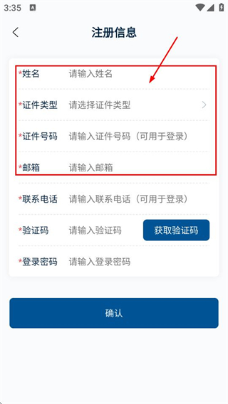 4、在注册信息页面,填写姓名-证件类型-证件号码-邮箱等带的信息。